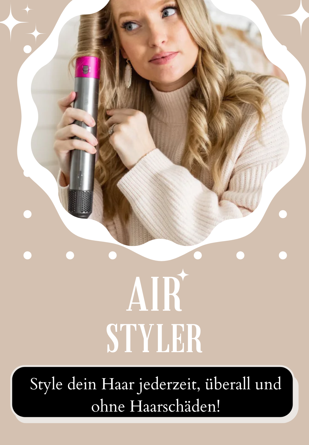 Der AirStyler ist ein innovatives Stylinggerät, das nicht nur mit Hilfe von Luft das Haar in Form bringt, ohne es zu beschädigen, sondern auch dafür sorgt, dass das Ergebnis den ganzen Tag hält.
